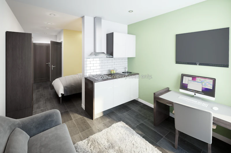 Located on the lower ground floor, these spacious studios cover 27.45 sqm. They include a comfortable bed, study desk, chair, a cupboard, and a private bathroom ensuring your privacy. The studio has a kitchen that is optimal for all your cooking needs and comes fully furnished, making it perfect for those who prefer more space.