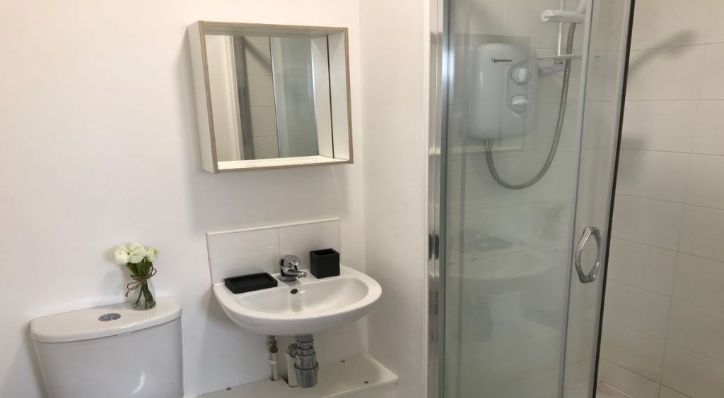 From 20m2 Deluxe self-contained studios are fitted with a large bed, wardrobe, chest of drawers, study desk and kitchenette. The studio en-suite is fitted with a power shower.