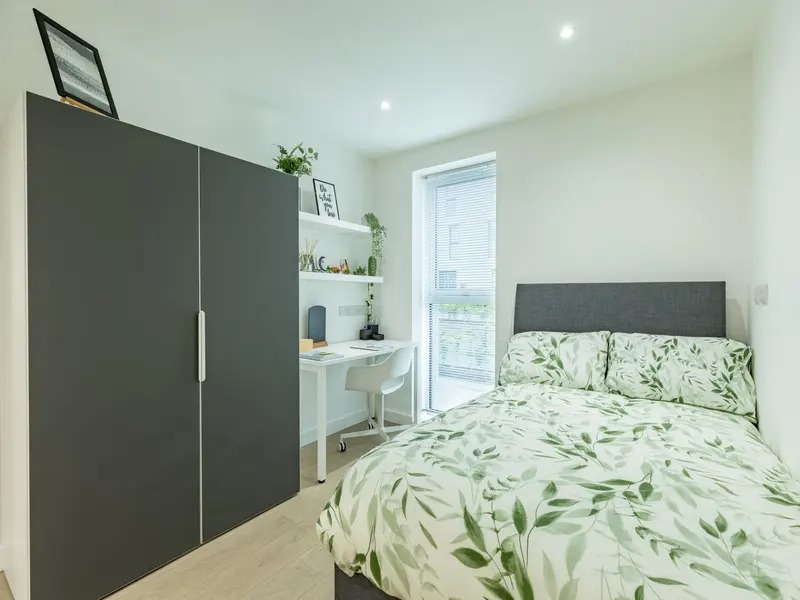 Choose our Classic Accessible Studio located on all floors for a student room with floor-to-ceiling windows and plenty of space! You’ll have your very own modern kitchenette so you can cook up a storm and chill out in the Insta-worthy roof garden once you’re done. For relaxing after a busy day, you can have a hot shower in your wet room, or jump straight into your comfy bed. With a spacious wardrobe and shelving, you’ll have tons of room for your belongings.