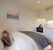Located on the 1st, 2nd and 3rd floor of block 4. Within your student apartment you’ll have your own study desk for working hard and plenty of space for all your belongings with shelving and a large wardrobe. Featuring a modern kitchenette equipped with all the amenities you could need, an ensuite bathroom for those long showers after a busy day and a comfy small double bed, you’ll have everything you could need.