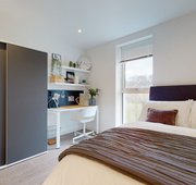 Located on the ground floor of block 4, our Deluxe Accessible Studios are bright and airy with floor to ceiling windows so you’ll have the perfect study base. Within your student apartment you’ll have your own study desk and plenty of space for all your belongings with shelving and a large wardrobe. With your own wet room, you can start the day off right with a nice hot shower.