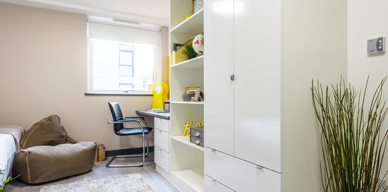 Your stylish student accommodation includes a small double-bed, comfortable study area, superfast WiFi/broadband and use of all the amazing facilities on-site. You’ll also have access to your own modern ensuite, all to yourself!