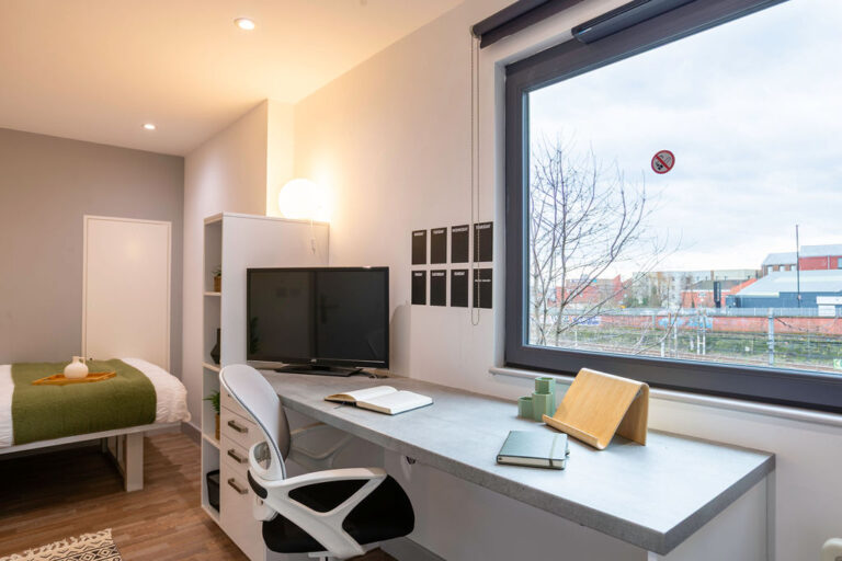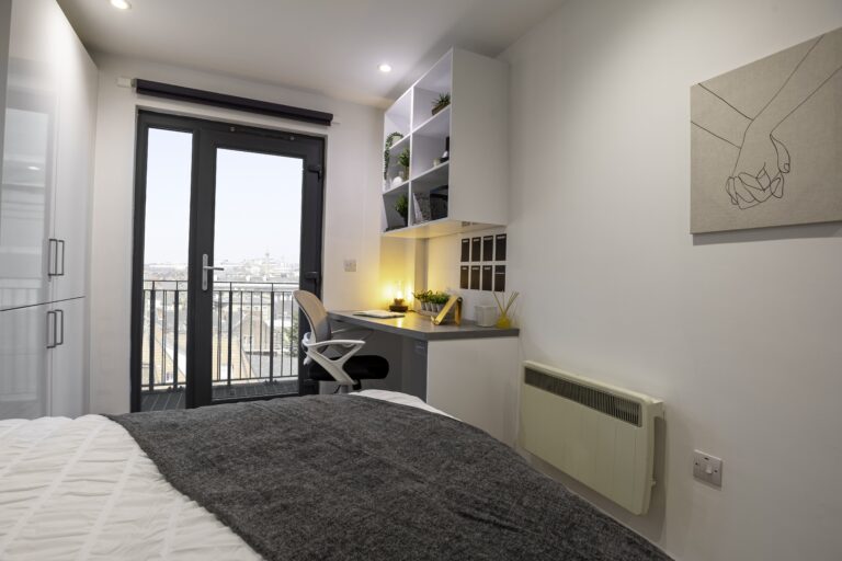 Our Deluxe Studios, located on the 7th floor, provide 17.5m2 of well-designed space. Each studio features a double bed, private en-suite bathroom, fully fitted kitchenette, ample storage, and a dedicated study area. With all-inclusive bills and Wi-Fi, you can enjoy a comfortable and connected student life.