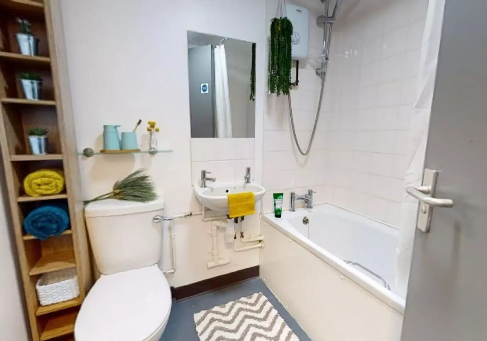 Private room Double bed Shared bathroom Shared kitchen Our top-of-the-range room offers a study space, plenty of storage and the use of a comfortable shared living and dining area, as well as a full-size double bed. Rooms are available within our three, four, five, six, seven or eight bedroom shared flats, depending on the length of your contract.