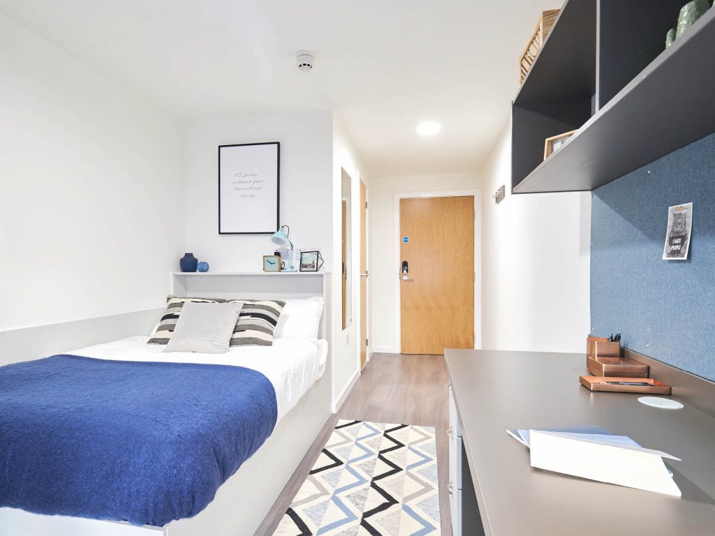 Our most spacious en suite. You get all the same great features as the Bronze and Silver En Suite but with more storage and space to move around in. Average room size 17-18.8 sqm.