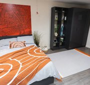 Room size is approximately 17m2 - Your own private studio - Private en-suite with shower - Double bed - Bedside table or shelving - Wardrobe - Study desk with shelving - Desk chair - Notice board - Coat hooks - Mirror ---- Whats in the kitchen? ---- Your own kitchen with plenty of storage - Cooker - Microwave - 2 ring hob - Fridge/freezer - Breakfast bar and chairs