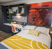 Room size is approximately 14m2 - Private en-suite with shower - Small double bed - Built in bookshelves - Wardrobe - Study desk with chair, shelving and draws - Notice board - Coat hooks - Mirror ---- Premium En-suite rooms are in shared flats of 6 beds - Shared kitchen with dining and lounge area - Under counter built in full or combi oven - Breakfast bar and stools - Fridge/freezer - Cooker - Microwave - Vacuum, broom, mop and bucket - Iron and ironing board - Kettle - Toaster
