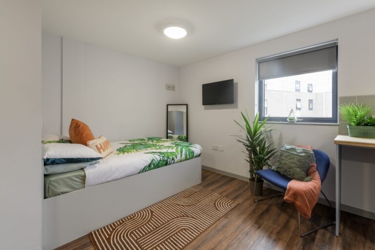 Our Standard Studios, located on various floors, provide 18-22m2 of well-designed space. Each studio comes with a small double bed with under bed storage, wardrobe and desk space, kitchenette with storage, an en-suite bathroom and a smart tv. With all-inclusive bills and Wi-Fi, you can enjoy a comfortable and connected student life.
