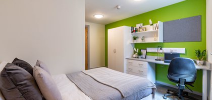 These 22+sq metre rooms are the largest rooms in Portland Green. Limited in number they are fully-fitted with everything a student needs from day-to-day living.