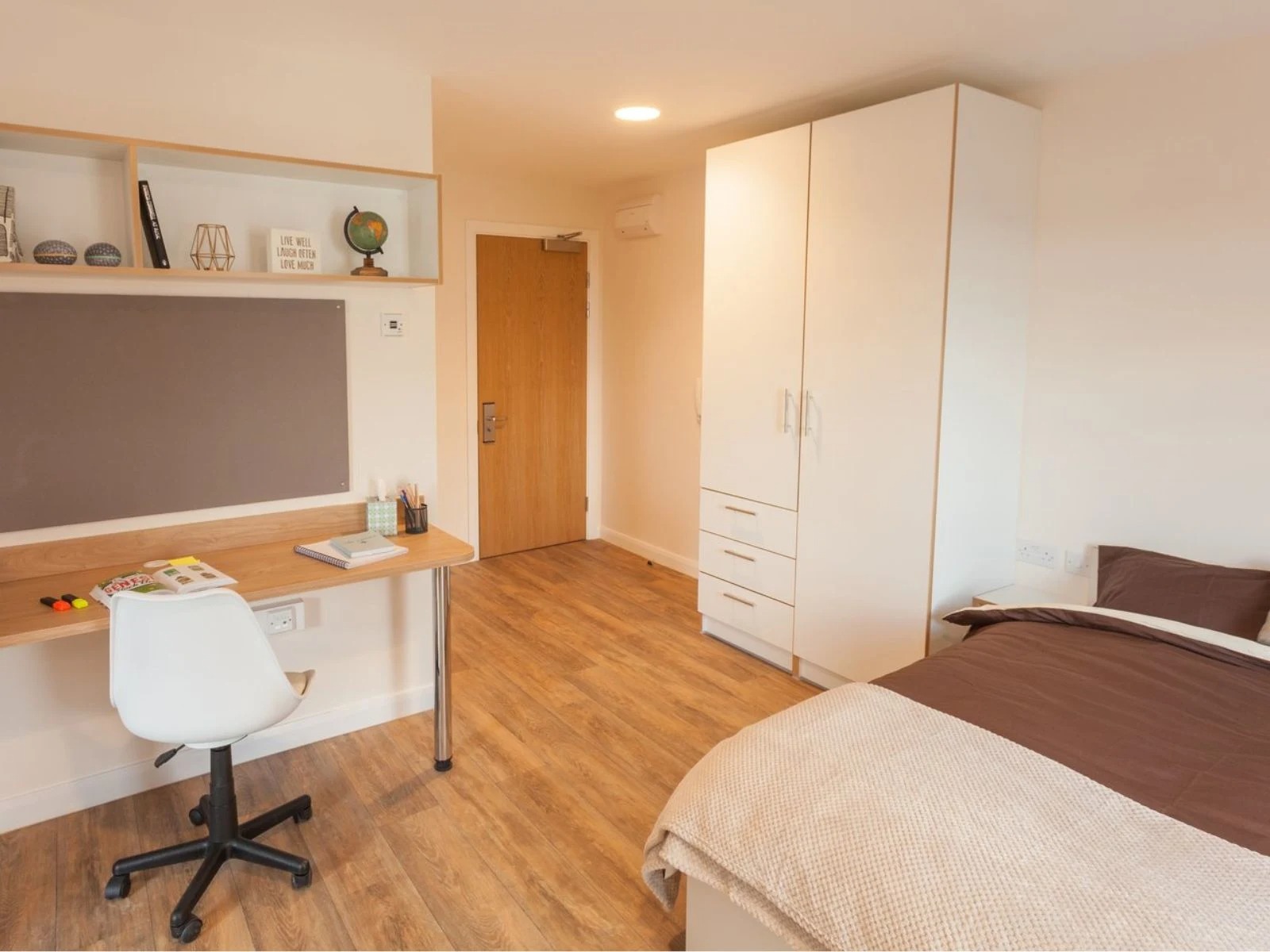 A 22.5sqm self-contained studio, perfect for studying and relaxing, but with plenty of room to invite friends over too. Enjoy a double bed, en-suite shower room, study space, loads of storage, a leisure area and your own modern mini-kitchen.