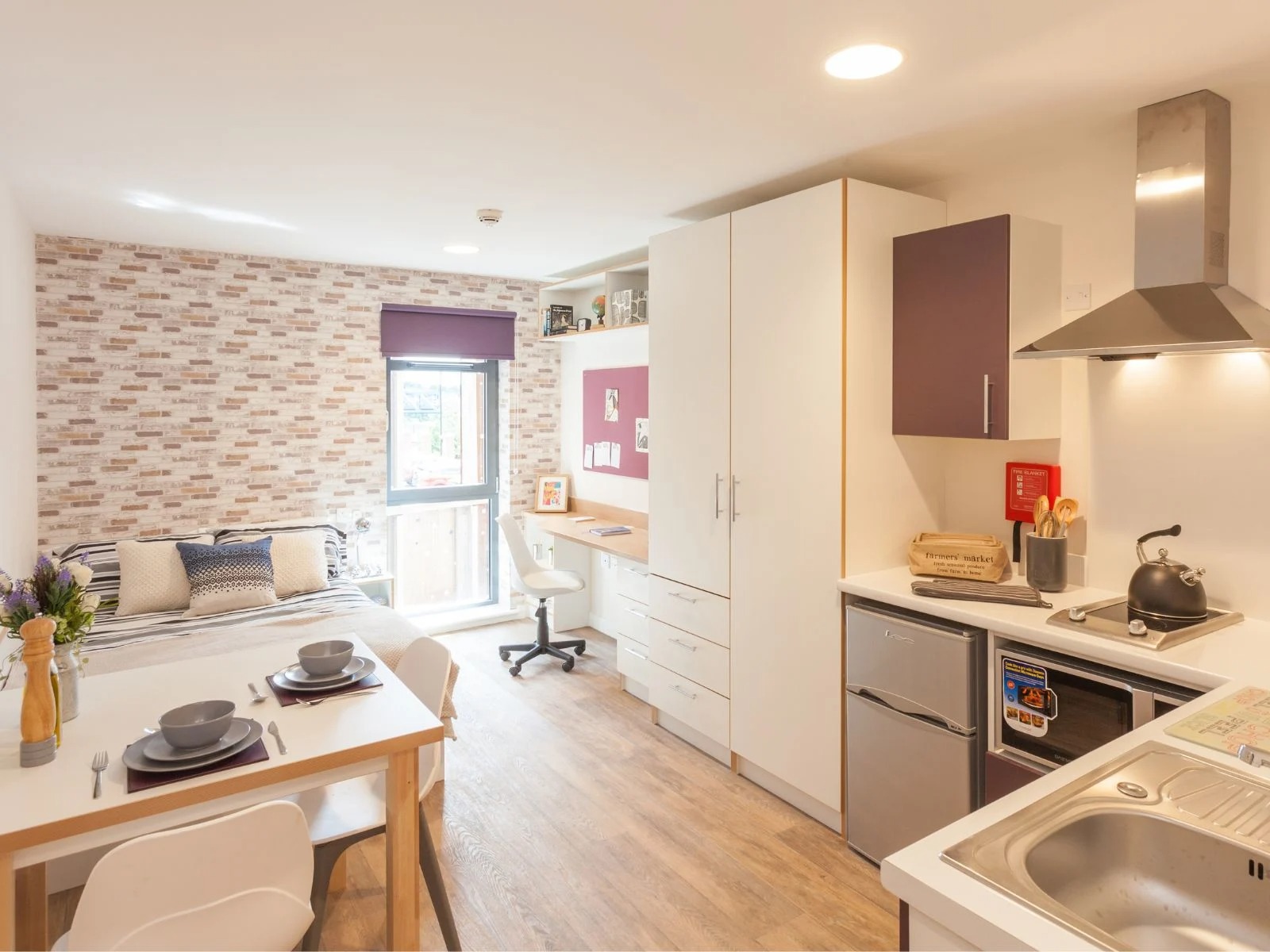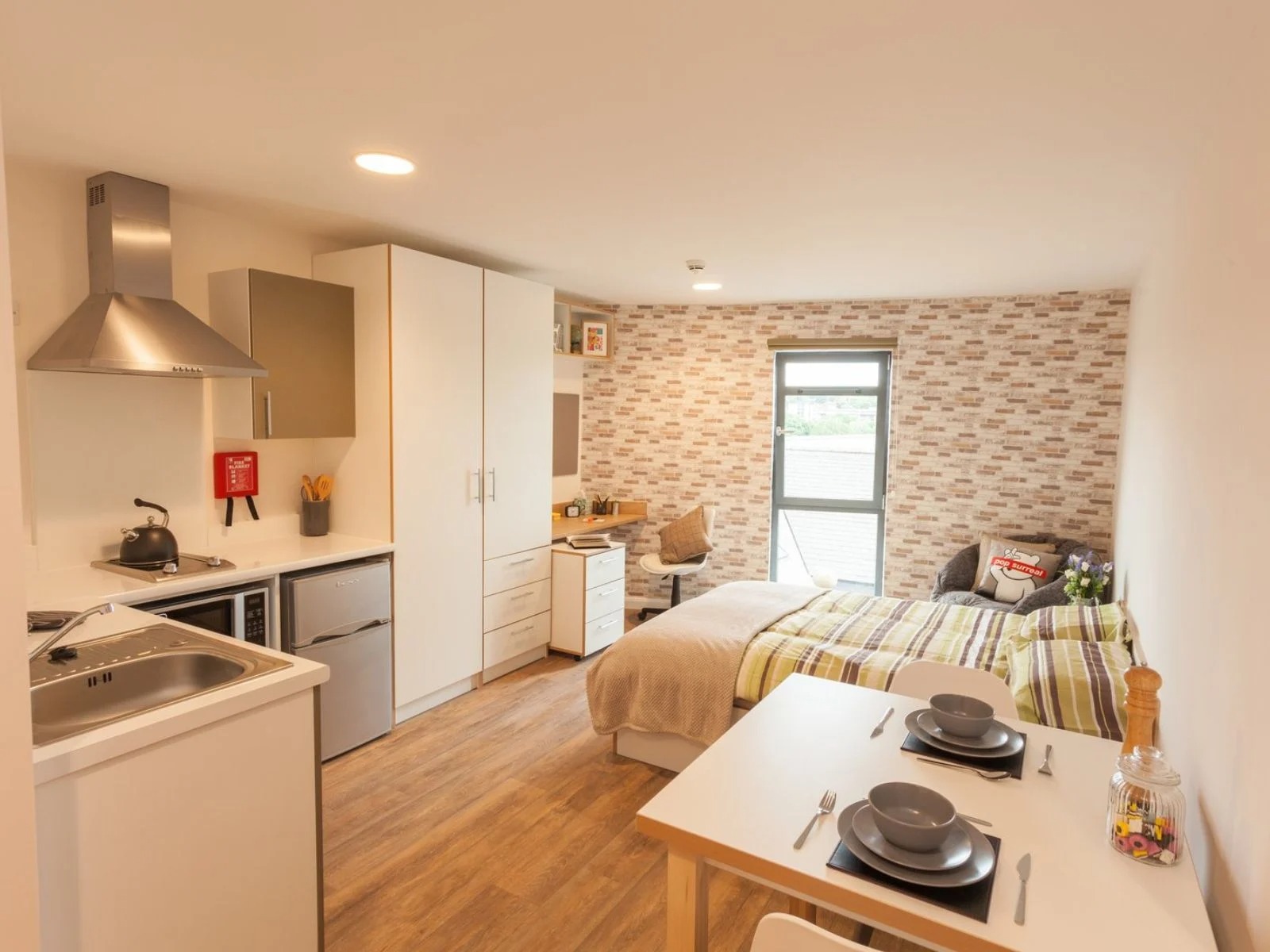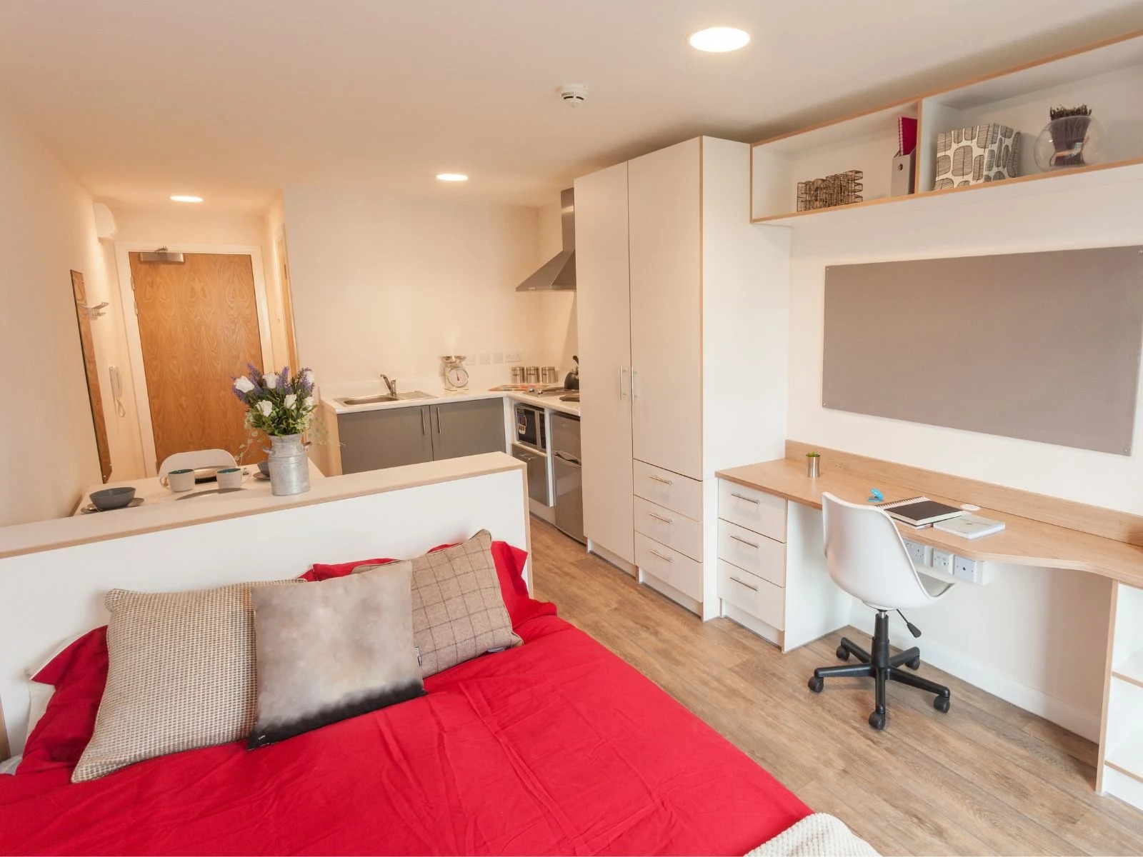 A 19.5 sq m self-contained studio, perfect for studying and relaxing, but with plenty of room to share as a couple at no extra cost! Enjoy a double bed, study space, loads of storage and your own modern mini-kitchen.