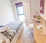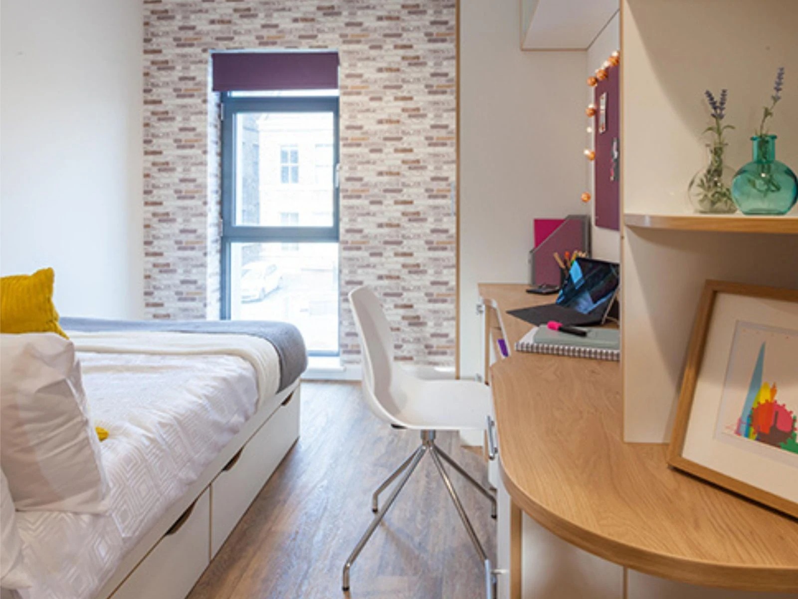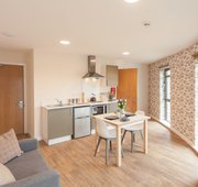 A 26sqm self-contained studio, perfect for studying and relaxing. Enjoy a double bed, study space, loads of storage and your own modern mini-kitchen. This accessible studio features a lowered kitchenette to accommodation for wheelchair use and a wet room with accessible aids in the bathroom.