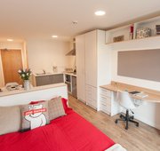 A 22 sq m self-contained studio, perfect for studying and relaxing, but with plenty of room if you're looking to share as a couple at no extra cost! Enjoy a double bed, en suite shower room, study space, loads of storage and your own modern mini-kitchen.