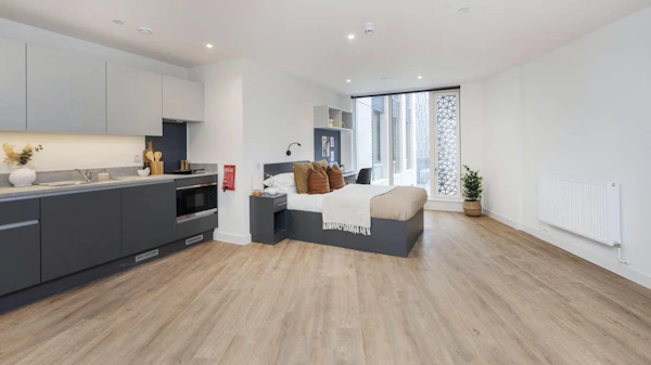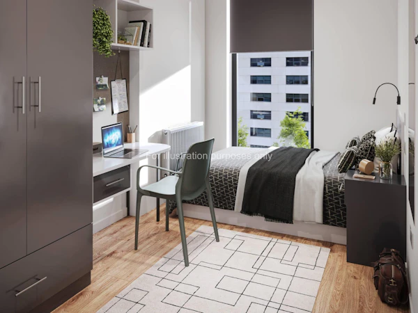 The Accessible Studio offers comfortable living designed with ease in mind. This room includes a cosy bed, study desk and chair, a cupboard, and a private bathroom for full convenience. The private kitchen is designed for smooth, easy use, allowing you to prepare meals with ease. With a welcoming and supportive setup, the Accessible Studio is ideal for students seeking a practical, independent living experience.