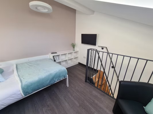 Dual occupancy available Self-contained kitchen, bathroom and living space. Small double 2x TV's with freeview, wardrobe, personal study space with desk and chair, kitchen, washer/dryer machine and en-suite bathroom