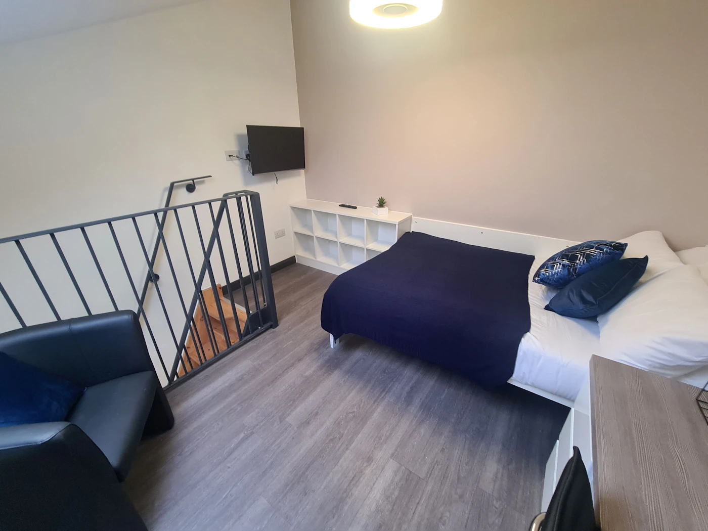 \Self-contained kitchen, bathroom and living space Accessible rooms only Small double bed 2x TV's with freeview, wardrobe, personal study space with desk and chair, kitchen, washer/dryer machine and en-suite bathroom