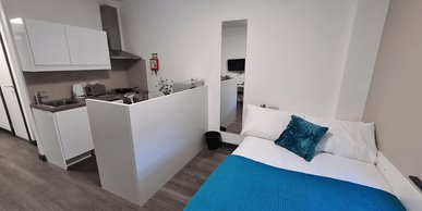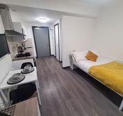 Dual occupancy available Self-contained kitchen, bathroom and living space Accessible rooms only Small double bed 2x TV's with freeview, wardrobe, personal study space with desk and chair, kitchen, washer/dryer machine and en-suite bathroom
