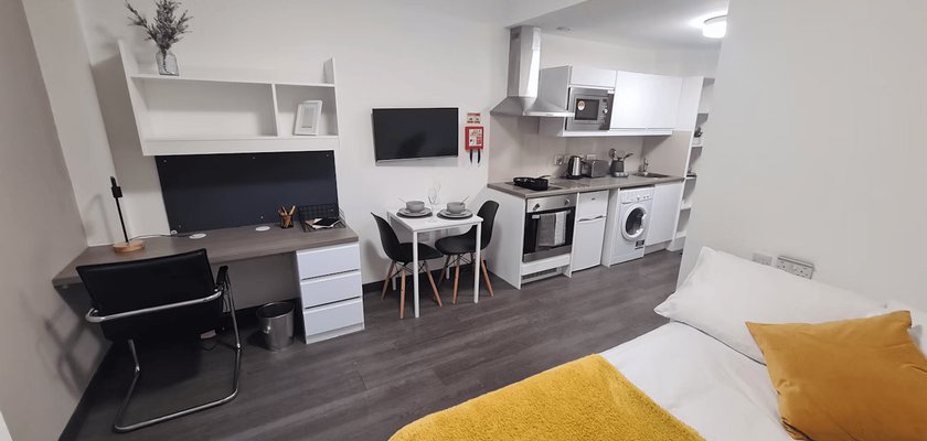 St James' House is at one of Newcastle's best locations. All rooms are studio flats with a contemporary kitchen and ample living space. St James' House, Newcastle is ideal for students looking for studio housing in the city and the experience of independent student living, with superb amenities, plenty of social space, and a distinctly residential atmosphere. At the same time, you'll be part of a vibrant student community with excellent onsite social amenities only a short walk from your studio door if you choose St James' House student accommodation.