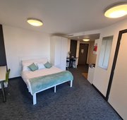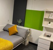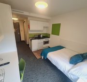 Self contained studio bedroom with own kitchen and bathroom Dual occupancy available Double bed Under-bed storage, desk, chair, wardrobe and chest of drawers included in the room