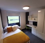 Ensuite bathroom and shared kitchen & living space with up to 5 other students Small double bed Under-bed storage, desk, chair, wardrobe and chest of drawers included in the room