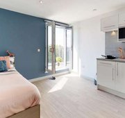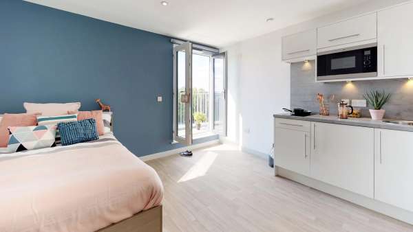 Classic Studios include all of your home comforts such as a compact double bed with under-bed storage, closet, desk & chair, ensuite bathroom with shower, sink and toilet plus kitchenette with storage, hob, fridge/freezer and combination microwave oven.