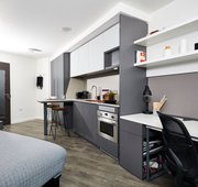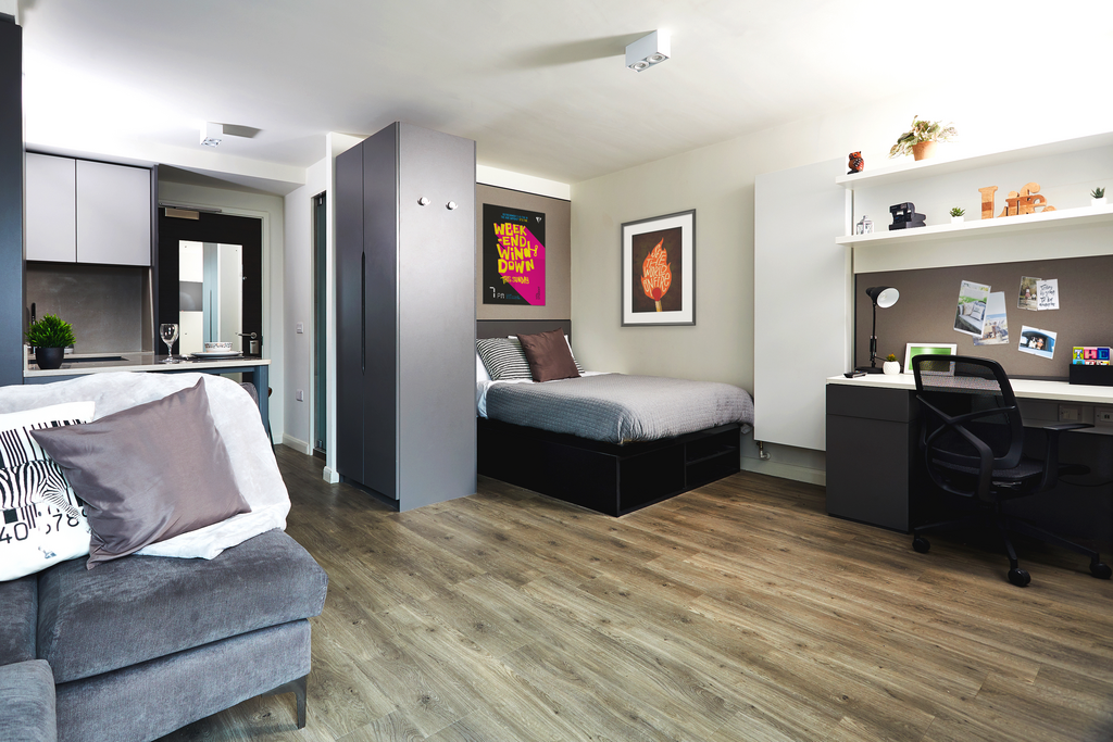 Vita Student Strawberry Place halls feature plenty of design perks that include a clean design, airy and light-filled spaces and designated study areas. All of these come together to make studying and living in the rooms very conducive. The location of the student halls is also well-thought-out and allows the students easy access to public transport and all their everyday essentials. From buying groceries to finding a fun place to spend an evening with friends, the place offers easy access to everything.