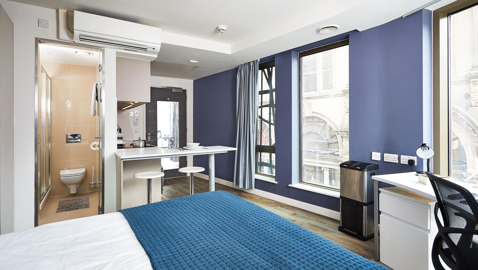 Love cooking? Our sanitised and well-equipped kitchen at Vita Student can be used to prepare everything from fancy meals to quick bites. With a designated study area in each room, we have attempted to create the ideal environment for you to feel motivated enough to study. The rooms also have double beds, so you will have plenty of space to roll around. For more information on the types of rooms or services offered at Vita Student Newcastle, feel free to connect with us at Best Student Halls. We are happy to be of help!