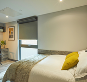 Room Size- 27m2 3/4 size double bed with under bed storage Private en-suite shower room Shared kitchen between 2, with 2 ring hob and combi microwave oven and breakfast bar Personal fridge freezer in each room Private room access each Study desk Chair Wardrobe Drawers Plenty of storage