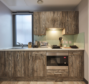 Room Size- 16m2 3/4 size double bed with under bed storage Private en-suite shower room Private kitchen with 2 ring hob, combi microwave oven and fridge/freezer Study desk Chair Wardrobe Drawers Plenty of storage Dining space