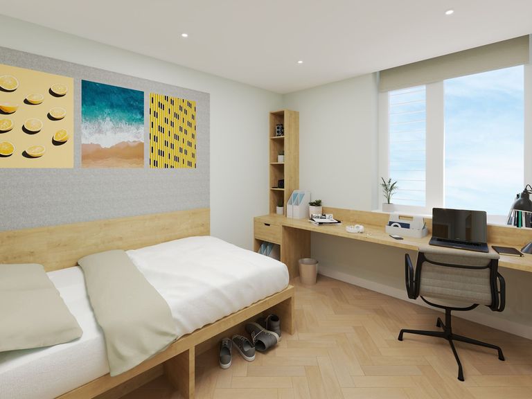 Your brand new Premium Ensuite is slightly bigger than the classic with 14.5-17 sqm per room. You’ll share a 7-8 bed flat with 1 kitchen or a 9-11 bed flat with 2 kitchens. Of course, you’ll have your own private ensuite bathroom as well as a ¾ double bed to chill out and relax, plenty of storage space, a desk and chair to study.