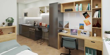 Our Premium Studio Plus rooms have all the facilities of a Premium Studio including your own ¾ double bed to chill out and relax, plenty of storage space, a desk and chair to study, your own fully-equipped kitchenette with a full-size oven and a private ensuite bathroom but with stunning views of Norwich City Centre or additional windows to let in even more natural light