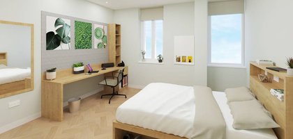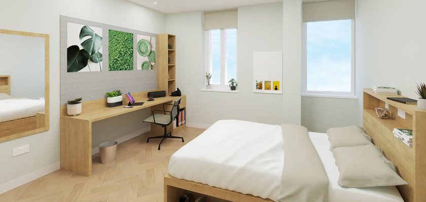The biggest of our ensuite rooms is the Deluxe which offers you 17.5 - 25 sqm in a 7-8 bed flat with 1 shared kitchen or in a 9-11 bed flat with 2 shared kitchens. You’ll get all the same amazing features as our other ensuites, including a private bathroom, a ¾ double bed to chill out and relax, plenty of storage space, a desk and chair to study.