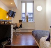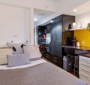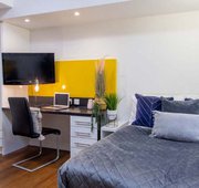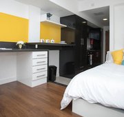 Gold Studio measuring around 18-19m², comes complete with a fixed bed with under bed storage, kitchenette, en-suite shower room, study area, double wardrobe, TV and up to 100mbps WIFI throughout. Please contact the property for Bed Size.