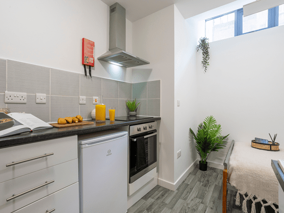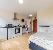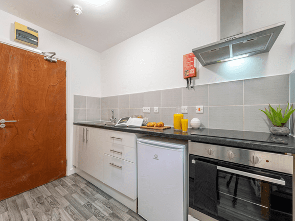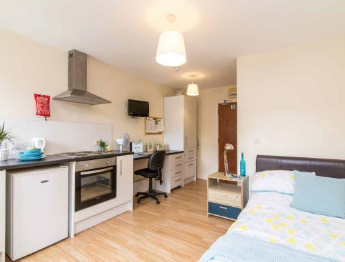 The Bronze Studio is one of the best studio rooms at Castle Gate House. Students can enjoy the well-furnished bedroom complete with a cosy bed, double wardrobe and shelving unit. The studio room also includes a private study area and a bathroom within the room. A kitchenette has all the latest cooking equipment so you can enjoy a homemade meal.