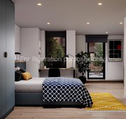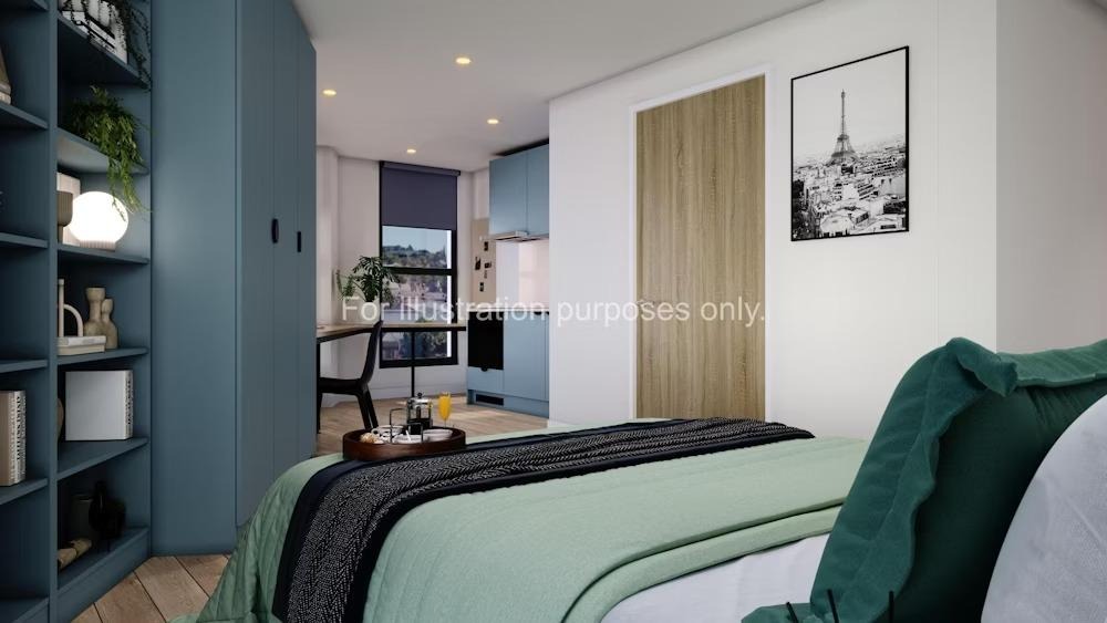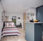 The Gold Studio gives you around 18.3 and 22 square metres to truly make the most of your student life. The room includes a comfortable bed, a private bathroom with stylish finishes, ample storage space, and a designated study area perfect for hitting the books or working on projects. The private kitchen is yours to use, equipped with essential amenities for cooking, dining, and storing food. This studio offers a peaceful space where you can fully focus on your studies, enjoy your meals, and relax.