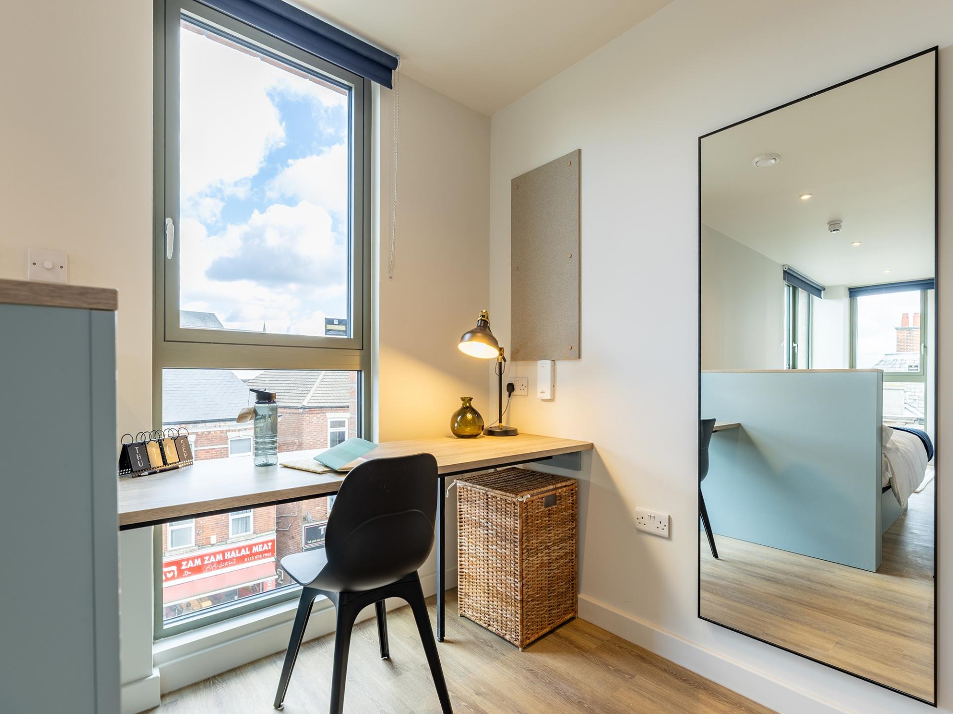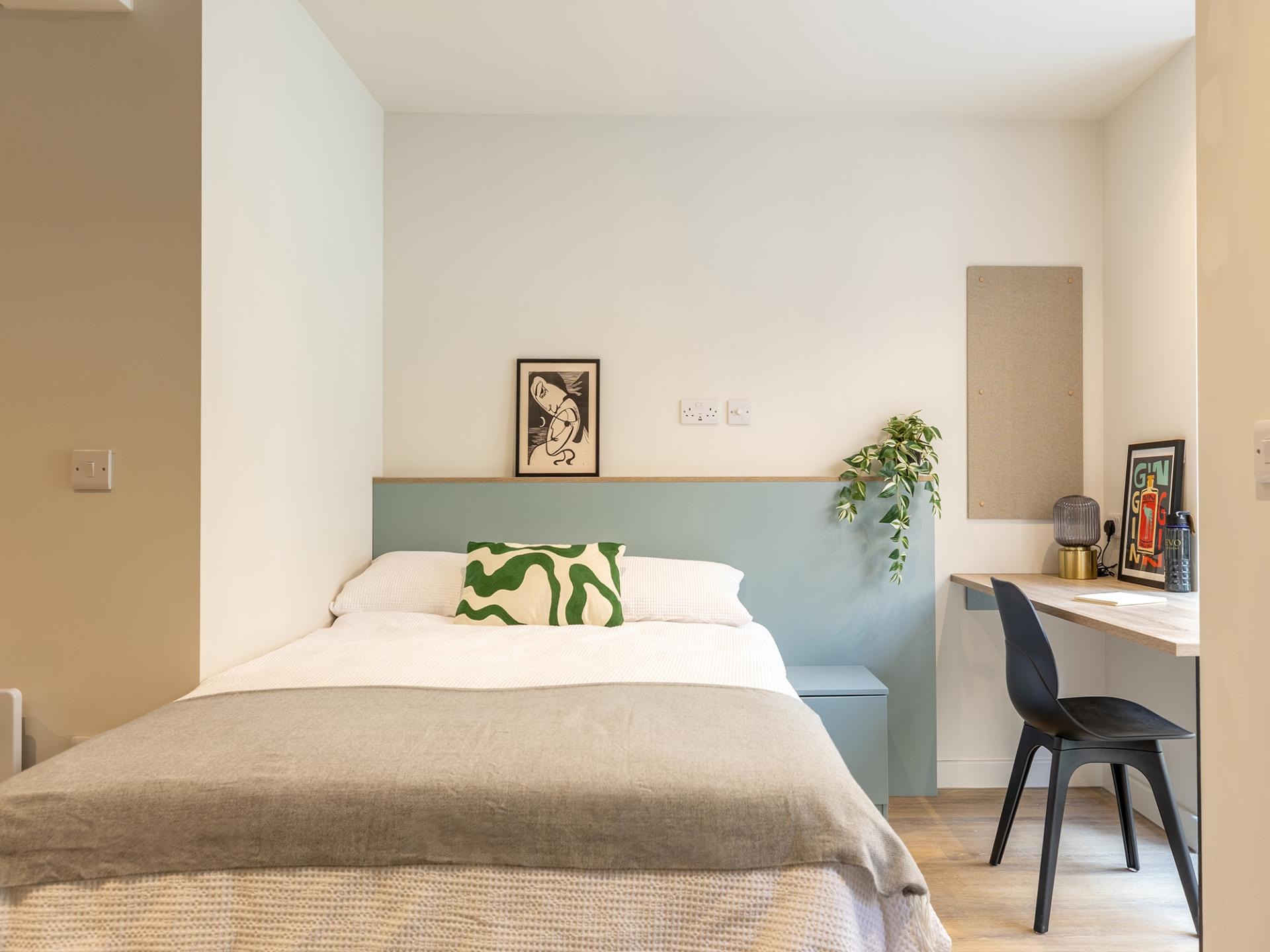 The Platinum Ensuite takes things up a level, offering 13.2 to 18.9 square metres in a 5 or 4-bed cluster. With a comfy bed, private bathroom, ample storage and study area setup, it’s designed for students who want a bit more room to call their own. The shared kitchen, is a calm spot to cook, eat, and catch up with your flatmates. Hurry up and book your room today!