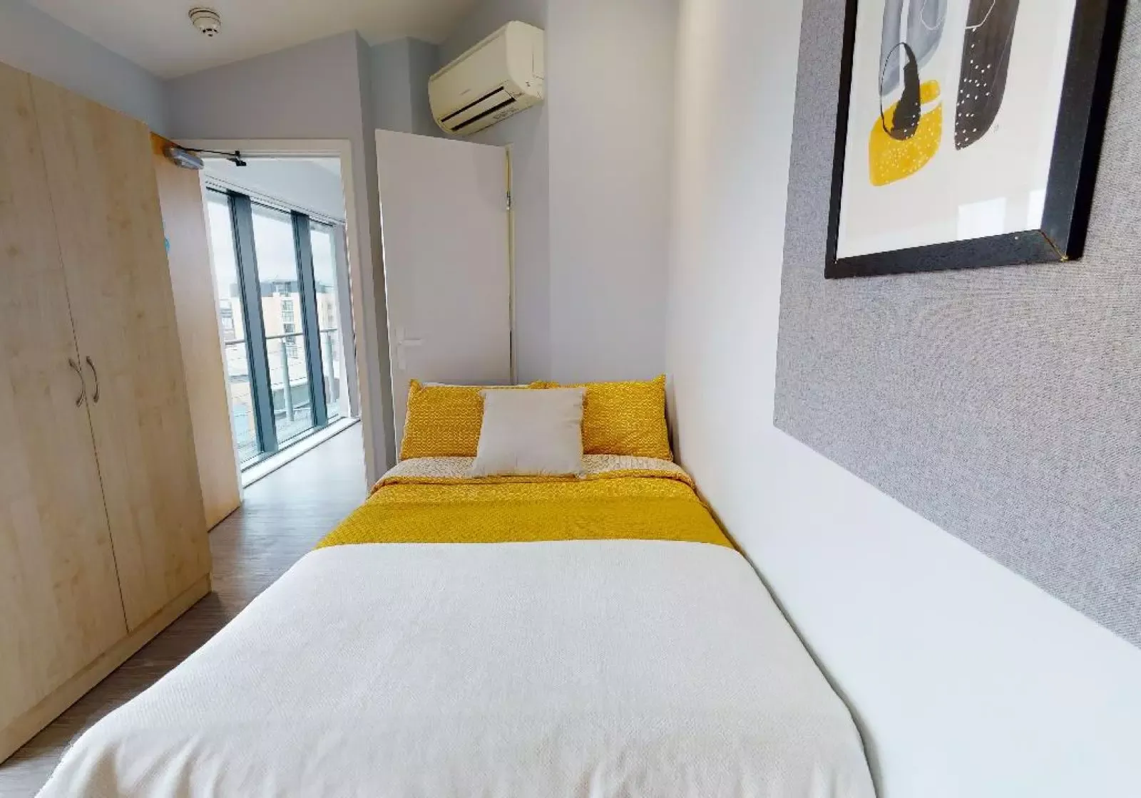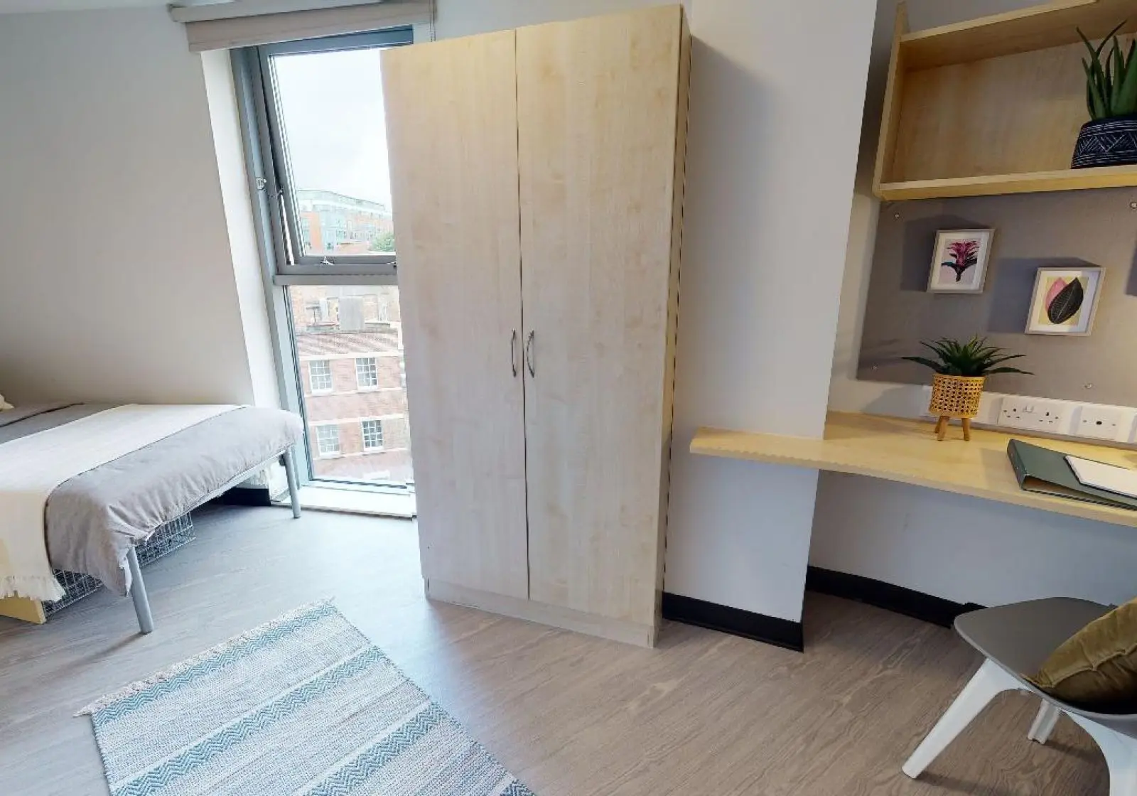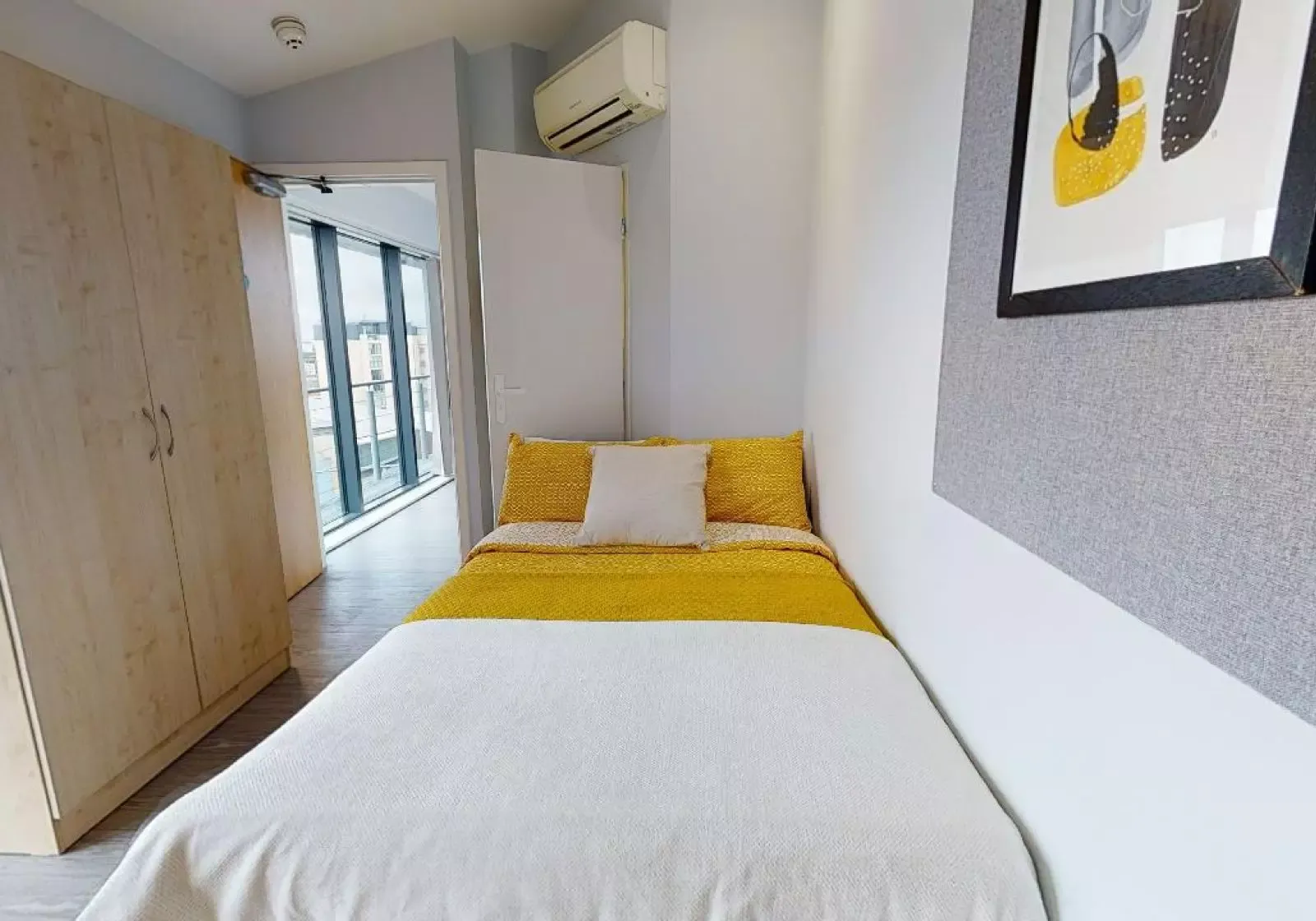 EXCH400-031125Fully refurbished student living experience with great views and added peace and quiet from these top-floor rooms. Includes air conditioning for extra comfort. These rooms come with small double bed, big windows, lots of storage and study desk and chair. Your shared living area and well-equipped kitchen give you a great social life too.