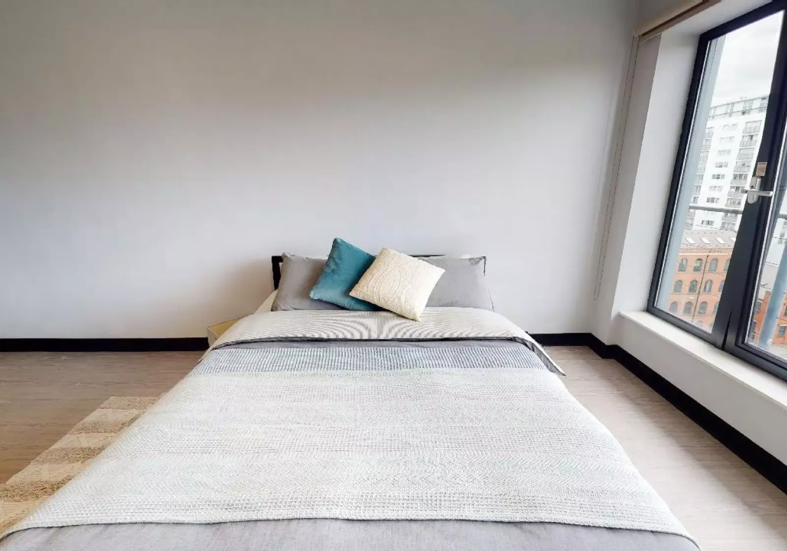 EXCH400-031125Enjoy great views from your floor to ceiling windows, as well as added peace and quiet from these top-floor rooms. These recently refurbished rooms come with big windows for lots of natural light, a small double bed, lots of storage, a study desk and chair and a private bathroom. You'll also get a great social vibe from your shared kitchen and living space, which you'll be sharing with 3 other flatmates.