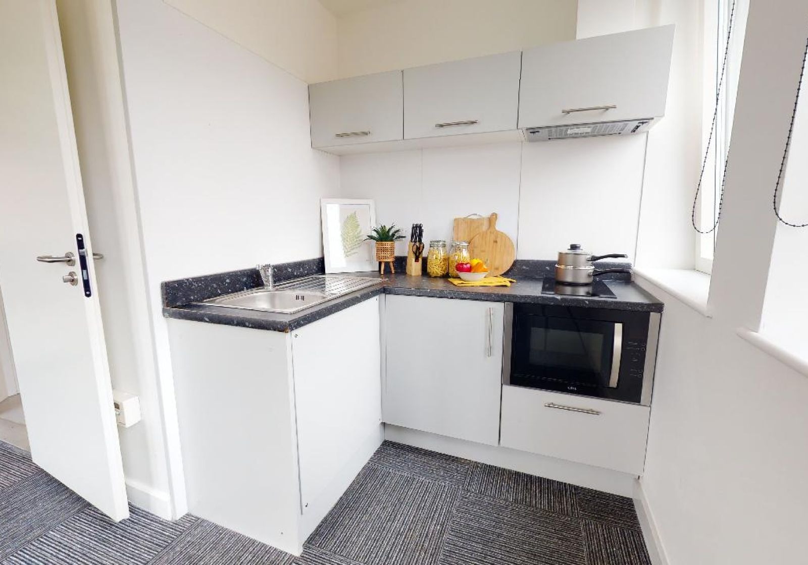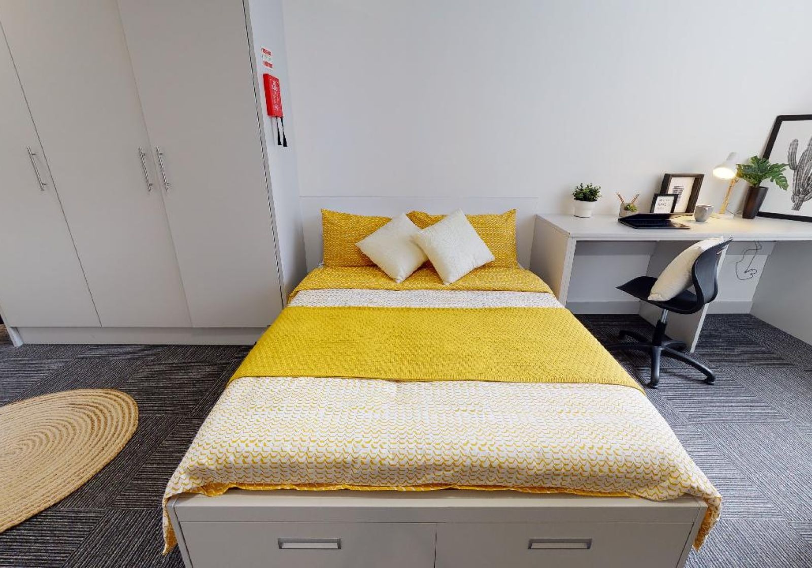 NEWL400-031125Upgrade to a little more space in these 21-23 sq m rooms, giving you private kitchenette and bathroom, double bed and a bright, airy feel. These rooms have superb views, with some overlooking Nottingham Castle. Multiple windows give lots of natural light, and there’s lots of storage, a study area and stylish design throughout. You also get to enjoy building features including a massive social space with TVs and pool tables and an onsite gym.