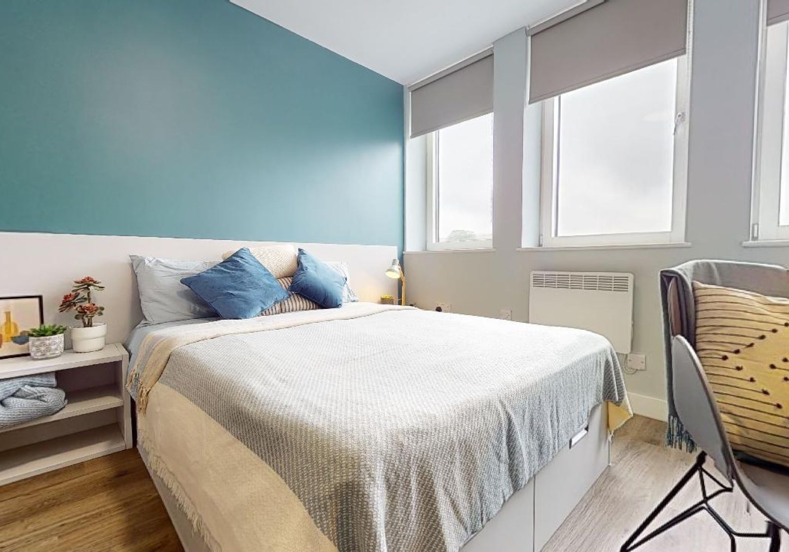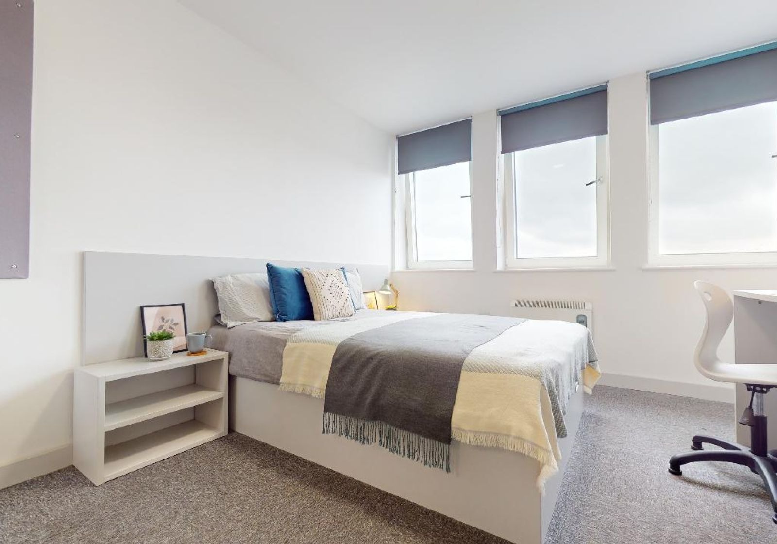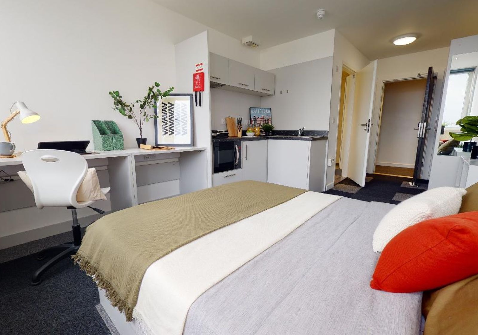 NEWT400-031125These entry-level rooms are super value, giving you private kitchenette and bathroom, double bed and a bright, airy feel. Many of these rooms have great views, with some overlooking Nottingham Castle. With multiple windows giving lots of natural light, plenty of storage, study area and stylish design, these rooms have got it all. Building benefits include a huge social space with TVs and pool tables and an onsite gym.