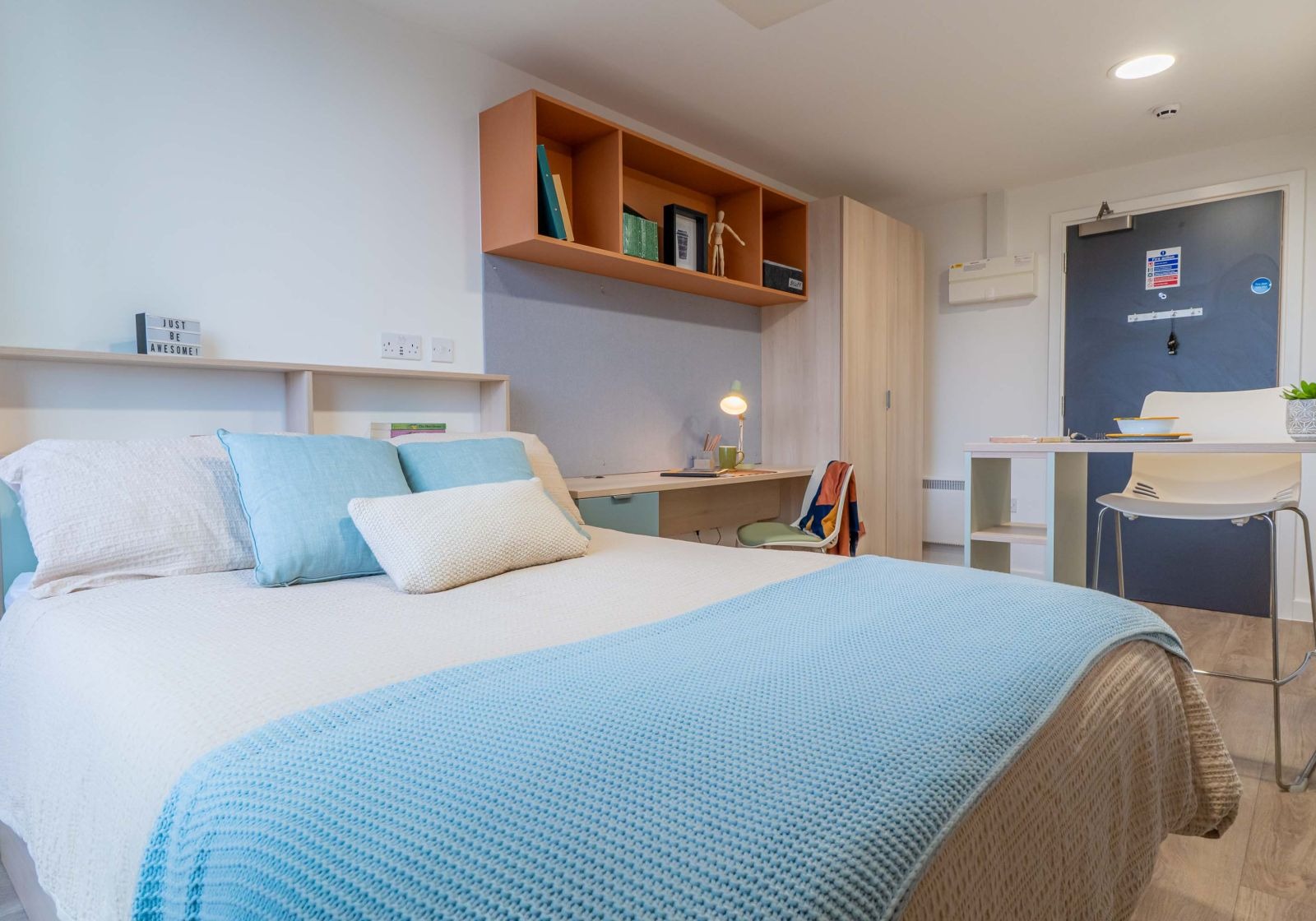 SIGN400-031125Great for mates, this room is part of a five bedroom flat. These rooms give you the biggest chance to meet other students and still enjoy the privacy of your own bathroom.\n\nThere's plenty of storage for all your stuff plus a bed, study desk and chair. When you're feeling even more social, head to the onsite spaces - there's a fitness studio, games room and more.\n\nYou're on track for your best year yet.
