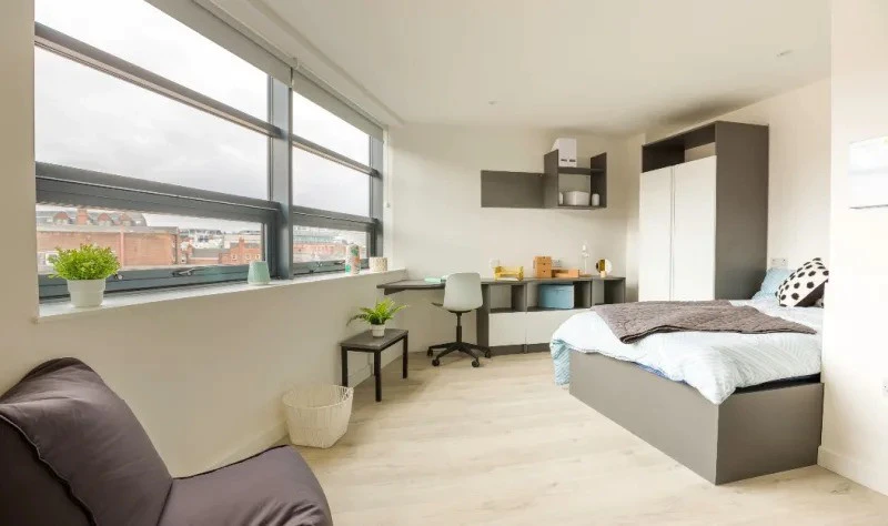 Within your apartment measuring between 20.38m2 – 20.74m2 you’ll have your own small double bed with under bed storage, a private ensuite bathroom, as well as a modern kitchen with a 2 ring hob, combi microwave oven and fridge/freezer. There’s plenty of space if you want to invite friends over and a comfy armchair for kicking back after a busy day.