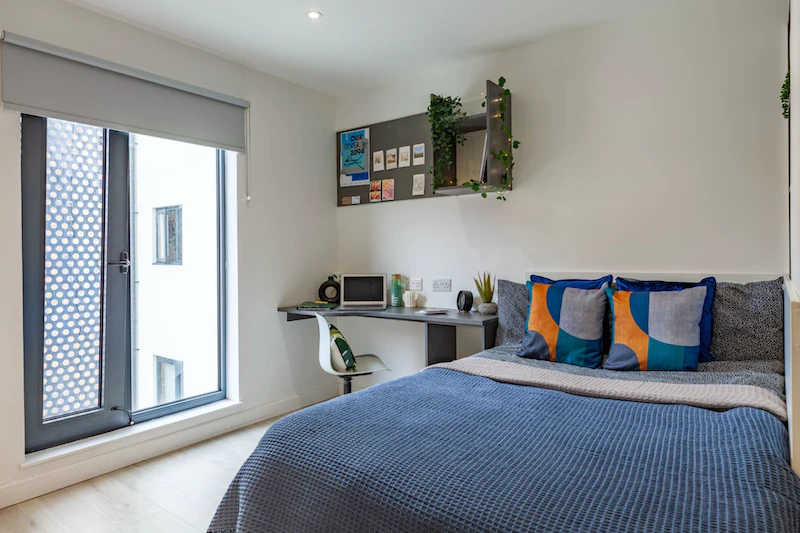 Our Classic Ensuite is the perfect choice. Measuring between 12.06m2 – 14.18m2 you’ll have your own bedroom featuring a small double bed with under bed storage, a private ensuite and a study desk and chair so you can meet your deadlines. You can spend time getting to know your flatmates in the shared kitchen and living area, or head downstairs to our fantastic communal spaces.