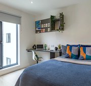 Our Cluster Ensuite comes fully furnished featuring a small double bed with underbed storage, wardrobe, a private ensuite bathroom as well as a study desk and chair. The kitchen and living space are shared between 6 people so you can get to know your flatmates and make new friends. Room sizes vary between 11.91m2 – 12.17m2.