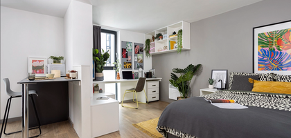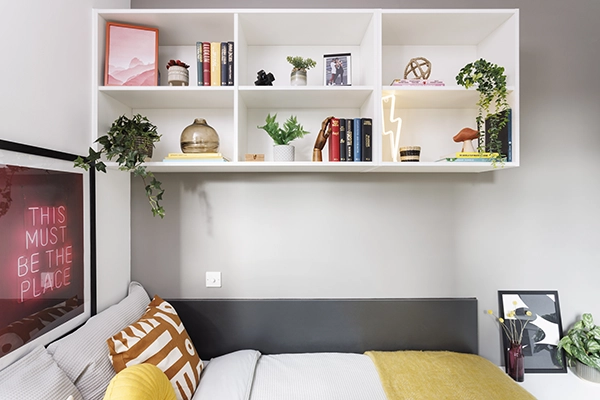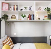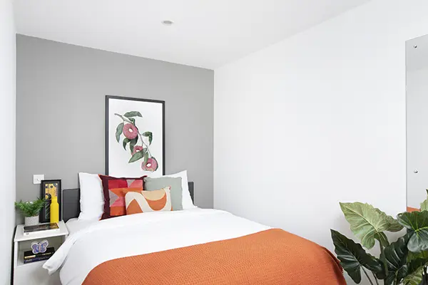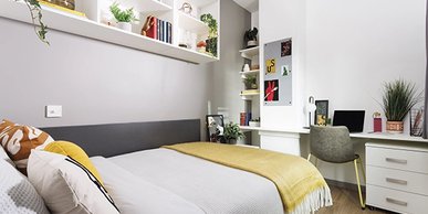 11.5m2 room Private Bathroom Shared Kitchen 4-9 flatmates 3/4 bed Desk chair Chest of drawers Curtains Desk Full-length mirror Under bed storage Wardrobe