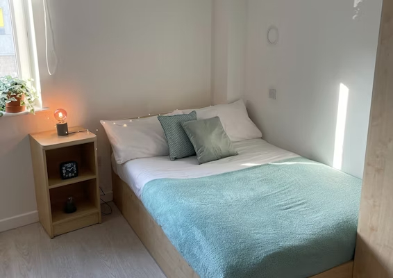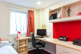 Communal kitchen, your own bathroom and living space shared with 3-5 students 10.5 – 15 m2 approximately Small double En-suite bathroom with shower toilet and basin Under-bed storage, desk, chair, wardrobe and chest of drawers
