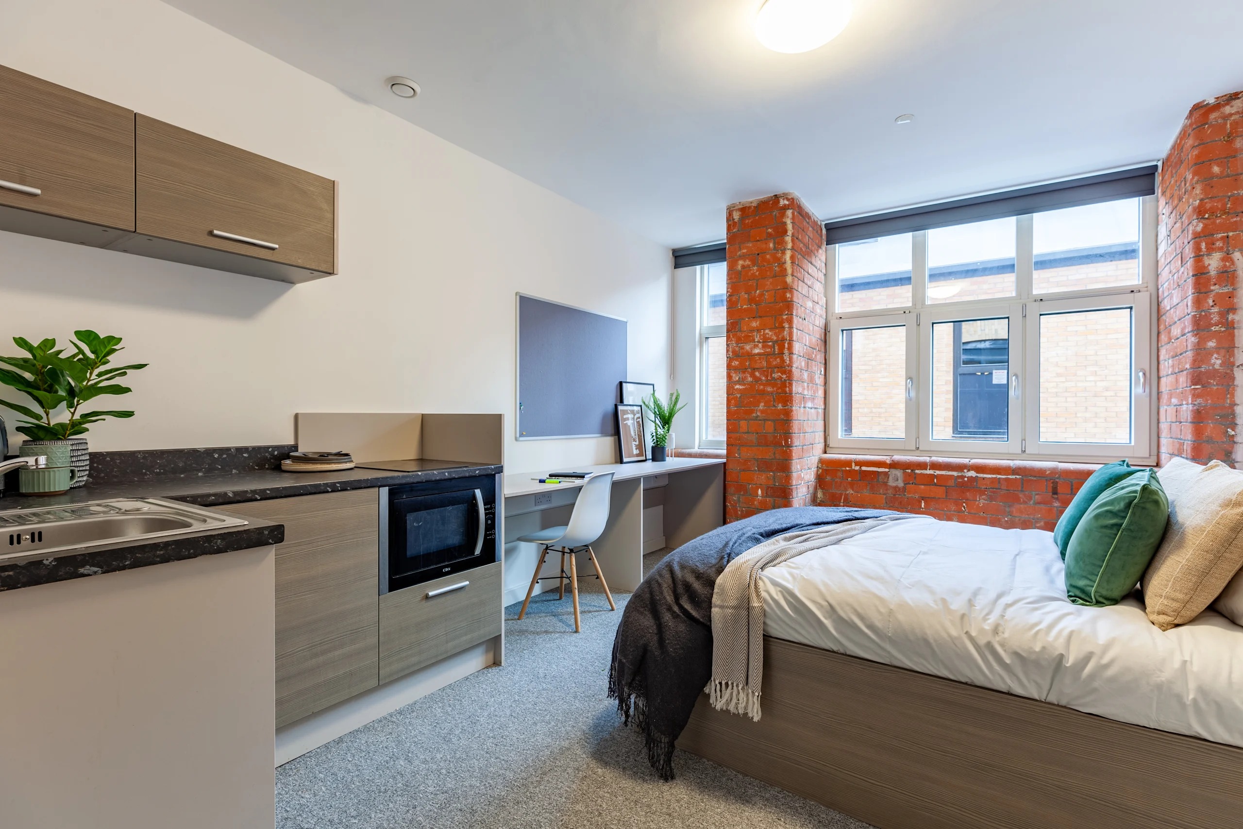 Our Copper Studios are fully equipped with all the essentials including a large study desk, high spec kitchenette, and modern en suite bathroom.