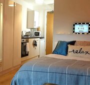 Designed for both study and relaxation, this studio features a 3/4 bed, a study desk with a chair, and generous storage space, including a wardrobe, bookshelves, and a noticeboard. The private kitchen equipped with essentials makes cooking easy, while the modern en-suite bathroom ensures privacy. Whether you’re studying or unwinding, the Deluxe Studio offers a premium experience.