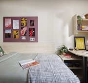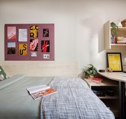 All the rooms here are en-suite, which means you’ll have your own private bathroom and share your kitchen and lounge area with flatmates. You’ll also find a spacious common room with pool table and table tennis, a study room, and a well-equipped gym. Outside, there’s a patio with benches and tables, and even a boules court.