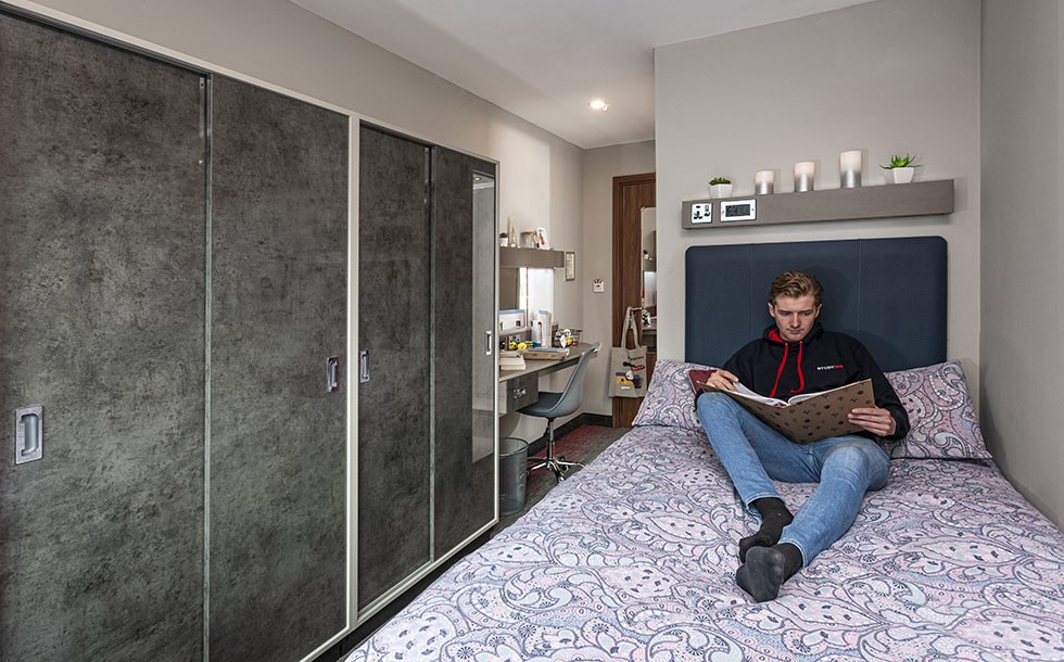 If you’re looking for extra space to relax in your accommodation, there’s no better choice than our Platinum Plus student lets. Platinum Plus rooms come kitted out with a variety of luxuries. As well as having access to all facilities of the standard Platinum rooms – including a smart TV, large wardrobe, relaxing comfort chair, and free Wi-Fi – you’ll benefit from a larger room and a breakfast table. You’ll receive regular room cleaning services from our brilliant team, taking away some of the stress of your busy student life! Our Platinum Plus student rooms are perfect for anyone who’s looking for extra space to relax within their student home. Dual occupancy available at £30.